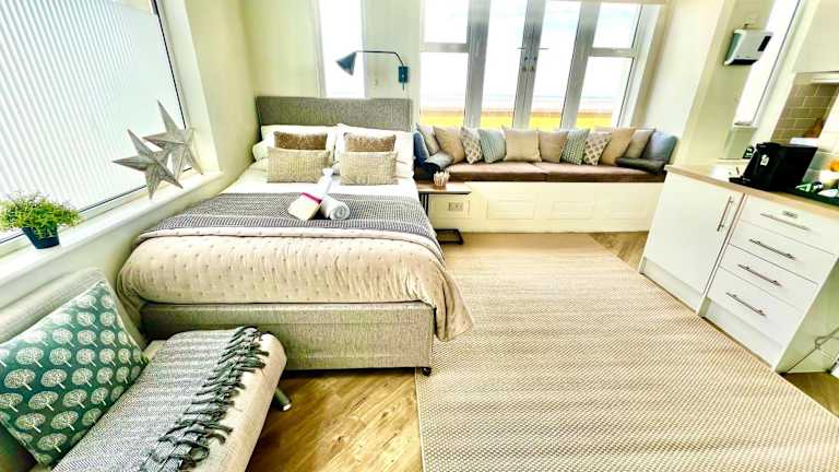 Das Beachfront Compact Coastal Crib liegt in Littlestone-on-Sea und bietet eine fantastische Lage direkt am Strand. Von hier aus können Sie die Schönheit der Küste und des Meeres genießen. Der Hafen von Folkestone und der Hauptbahnhof Folkestone sind nur eine kurze Autofahrt entfernt und bieten Ihnen die Möglichkeit, die Umgebung zu erkunden. Auch der Bahnhof Dover Priory und der Bahnhof Canterbury East sind gut erreichbar. Der nächstgelegene Flughafen ist der London City Airport, der etwa 112 km entfernt liegt.