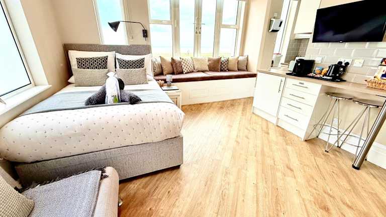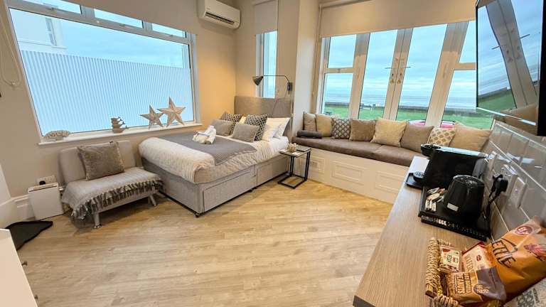 Das Beachfront Compact Coastal Crib in Littlestone-on-Sea ist die ideale Unterkunft für einen entspannten Strandurlaub. Mit kostenfreiem WLAN und Klimaanlage ausgestattet, bietet das Apartment einen atemberaubenden Blick auf das Meer. Die Nähe zum internationalen Flughafen Ashford Eurostar und dem Eurotunnel UK machen es zu einem praktischen Ausgangspunkt für Reisende.