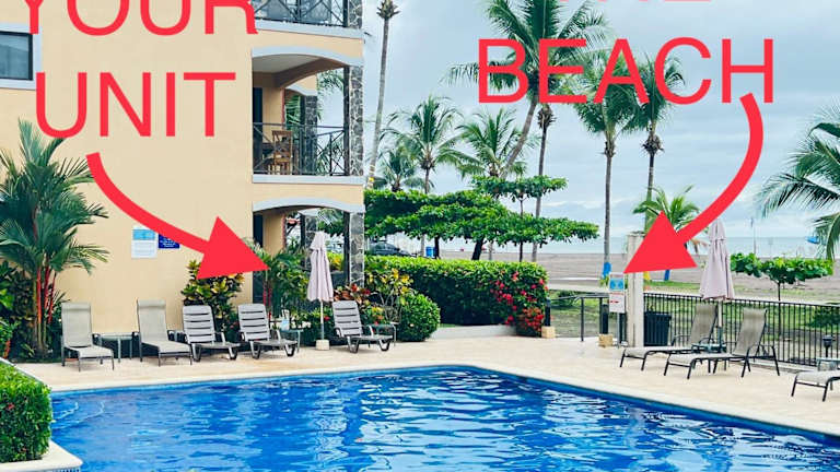 Die Unterkunft liegt direkt am Strand Playa Jacó in Jacó, nur wenige Schritte vom Meer entfernt. Der Themenpark Rainforest Adventures Jaco befindet sich in einer Entfernung von 5,9 km. Der nächstgelegene Flughafen, La Managua, ist 70 km entfernt.