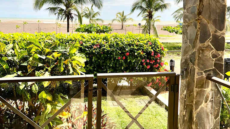 Die BEACHFRONT Condo Bahia Encantada L1 Jaco Beach bietet eine Kombination aus modernem Komfort und direktem Zugang zum Strand. Die Unterkunft verfügt über einen Außenpool, einen Garten und eine Terrasse, die zum Verweilen einladen.