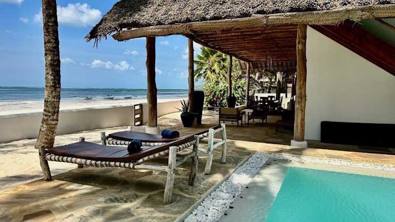 Das Beachfront Turtle House mit Privatpool in ZanzibarHouses bietet strukturierte Übernachtungsmöglichkeiten direkt am Strand. Die Unterkunft umfasst einen Außenpool, einen Garten und einen eigenen Strandbereich. Es handelt sich um eine klimatisierte Villa mit drei Schlafzimmern und einem Wohnzimmer. Die Rezeption ist rund um die Uhr besetzt, wobei die Mitarbeitenden Englisch und Italienisch sprechen.