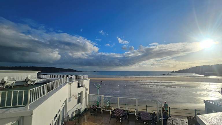 Das Beau Rivage befindet sich im Zentrum der St. Brelade's Bay, direkt am Strand. In unmittelbarer Nähe liegen die historische Fischerkapelle und der Winston Churchill Park. Das Zentrum von Jersey ist nach etwa 15 Fahrminuten erreichbar.