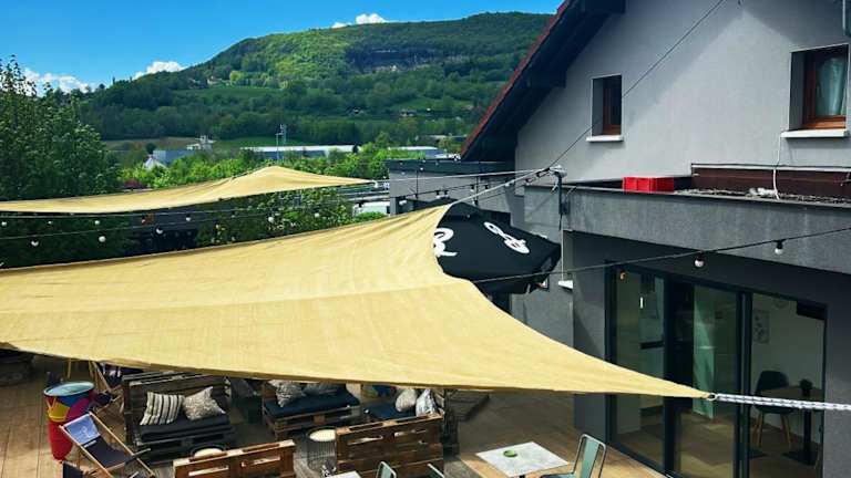 Das Hotel befindet sich nur 10 Minuten von Annecy in der Region Haute-Savoie, in der Nähe der Ausfahrt 18 der Autobahn A41. Umgeben von den beeindruckenden Bergketten des Aravis-Massivs und des Bornes-Massivs bietet die Lage zudem eine gute Anbindung; Genf ist in 30 Fahrminuten zu erreichen. Ein Bus, der nur 50 m vom Hotel entfernt hält, ermöglicht die Verbindung nach Annecy und zum Flughafen Genf.