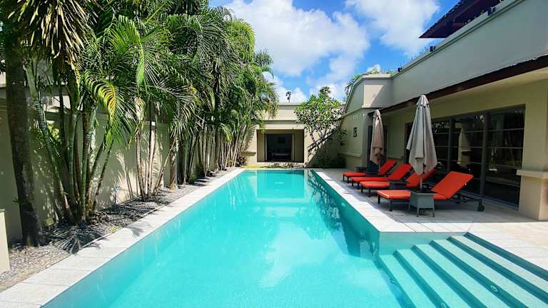 Die Unterkunft Luxury 3br Pool Villa Walk To Bangtao Beach bietet klimatisierte Übernachtungsmöglichkeiten mit einem Balkon und ist von einem Garten umgeben. Die Villa verfügt über einen Pool und kostenloses WLAN.
