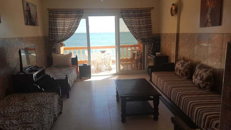 Beautiful Apartment directly at the beach of Taghazout ist eine Ferienwohnung mit einem Schlafzimmer und einem Bad. Sie bietet kostenfreies WLAN in der gesamten Unterkunft sowie einen Balkon mit Meerblick. Die Ausstattung umfasst außerdem Bettwäsche, Handtücher und einen TV mit Satellitenkanälen.