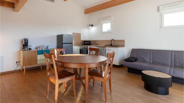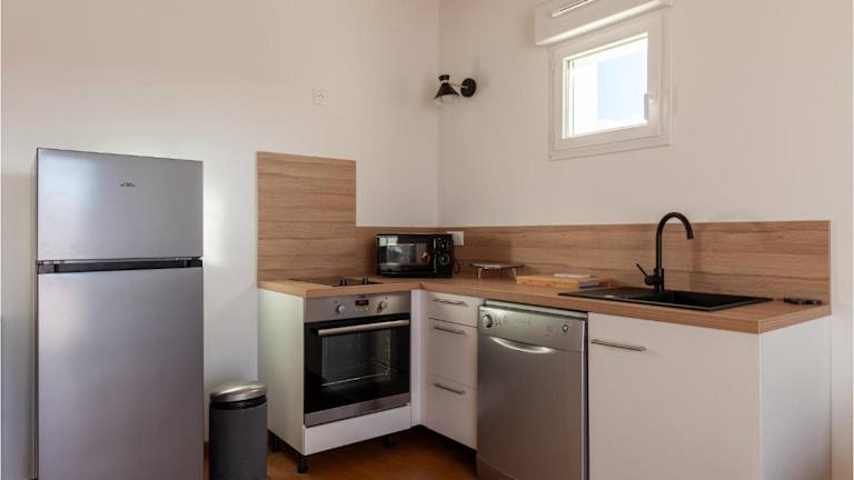 Das Apartment umfasst zwei Schlafzimmer und eine voll ausgestattete Küche, die mit einem Kühlschrank und einem Geschirrspüler ausgestattet ist. Zudem stehen zwei Badezimmer mit Dusche und Whirlpool zur Verfügung. Die Einrichtung ist modern und bietet einen Fernseher sowie Gartenmöbel für entspannte Stunden im Freien. Es handelt sich um eine Nichtraucherunterkunft, die Klimaanlage und Heizung bietet.