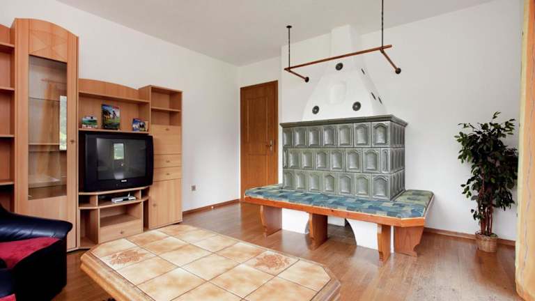 Das Apartment verfügt über sechs gemütliche Schlafzimmer und bietet Platz für größere Gruppen oder Familien. Das Wohnzimmer ist mit einem Fernseher ausgestattet und lädt zum Entspannen ein. Die voll ausgestattete Küche bietet alles, was Sie für die Zubereitung Ihrer Mahlzeiten benötigen, einschließlich Kühlschrank und Backofen. Die beiden Badezimmer sind mit Duschen ausgestattet und bieten viel Komfort.