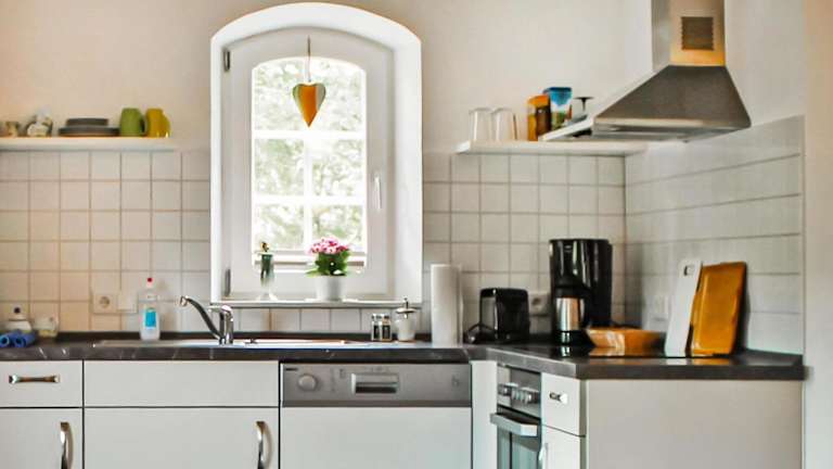 Die Unterkunft verfügt über eine voll ausgestattete Küche, die mit einem Kühlschrank, Geschirrspüler, Herdplatte und einer Kaffeemaschine ausgestattet ist.
