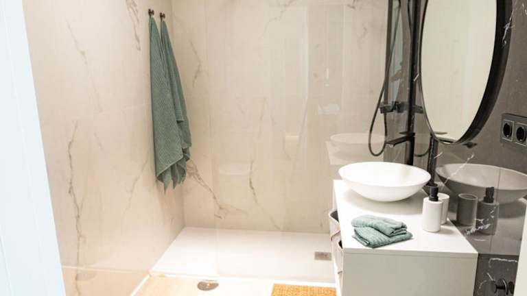 Das klimatisierte Apartment verfügt über 2 Schlafzimmer, ein Wohnzimmer und eine voll ausgestattete Küche mit Kühlschrank und Kaffeemaschine. Es gibt auch 2 Badezimmer mit Dusche und kostenlosen Pflegeprodukten. Handtücher und Bettwäsche werden gestellt, so dass Sie sich wie zu Hause fühlen können.