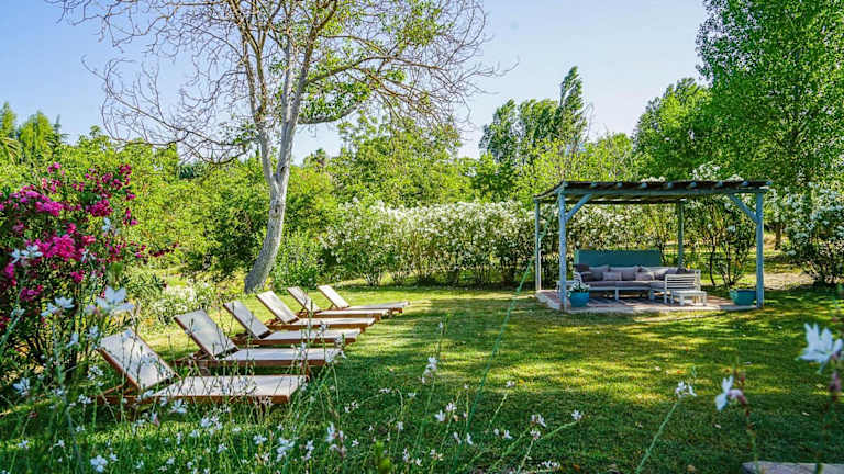 Die Villa bietet einen saisonalen Außenpool, in dem Sie sich an warmen Tagen erfrischen können. Der Garten und die Terrasse laden zum Entspannen und Genießen der umliegenden Landschaft ein. Für aktive Gäste gibt es die Möglichkeit zu wandern und Tischtennis zu spielen.