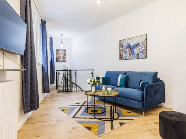 Das Beautiful duplex - 2BR 6P - Near Montmartre befindet sich in Paris, ca. 1,6 km von der Konzerthalle La Cigale entfernt. Die Metrostation Pigalle ist 1,5 km entfernt. Die Unterkunft liegt in der Nähe von bekannten Sehenswürdigkeiten wie Sacré-Cœur, das 1,2 km entfernt ist, sowie dem Gare Saint-Lazare und dem Bahnhof Paris-Est, die beide etwa 3 km entfernt liegen. Der Flughafen Paris-Charles-de-Gaulle ist 19 km entfernt.
