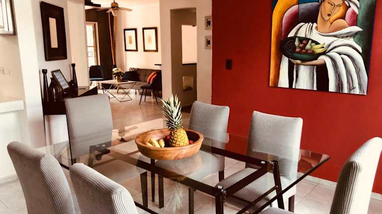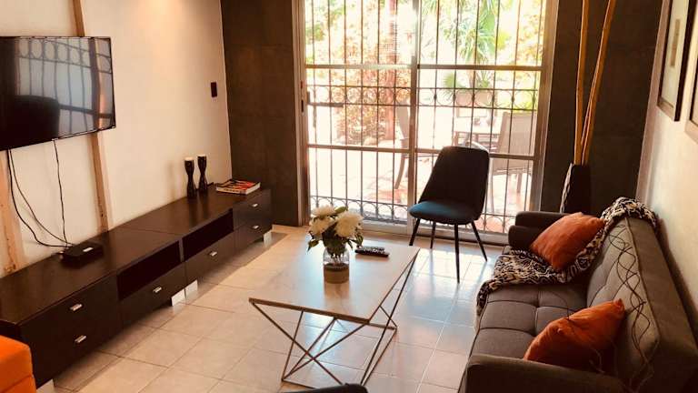Die Unterkunft befindet sich etwa 1,7 km von Playa Blanca entfernt und bietet eine ruhige Gartenansicht. Zudem liegt die Ferienhaus näher zu weiteren Stränden, wie dem Strand Puerto Juarez, der 2,5 km entfernt ist. Der Busbahnhof von Cancun ist 4,6 km entfernt und der Flughafen Cancún befindet sich in einer Entfernung von 22 km.
