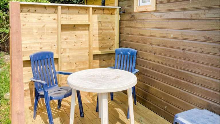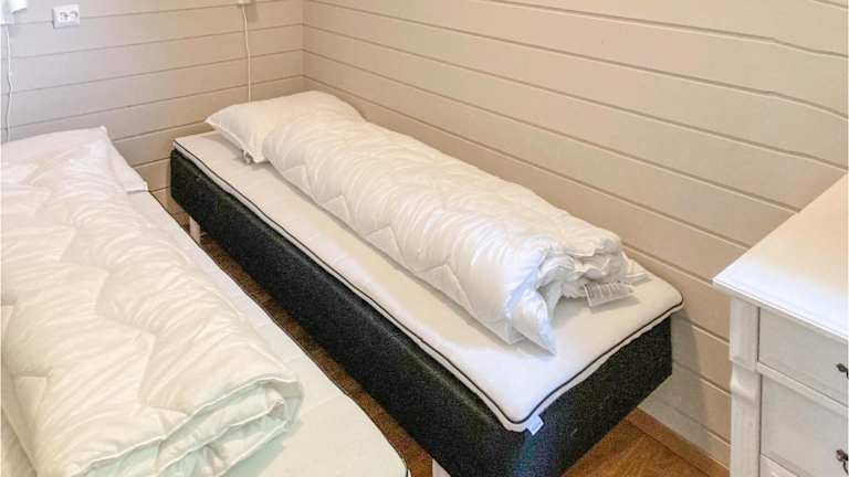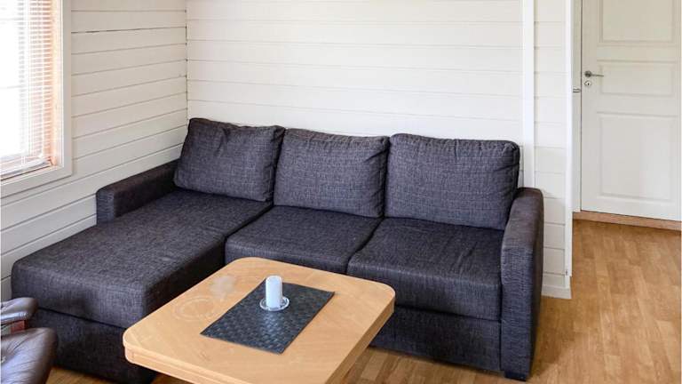 Das Ferienhaus bietet ein Schlafzimmer sowie ein Wohnzimmer. Die voll ausgestattete Küche verfügt über einen Kühlschrank.