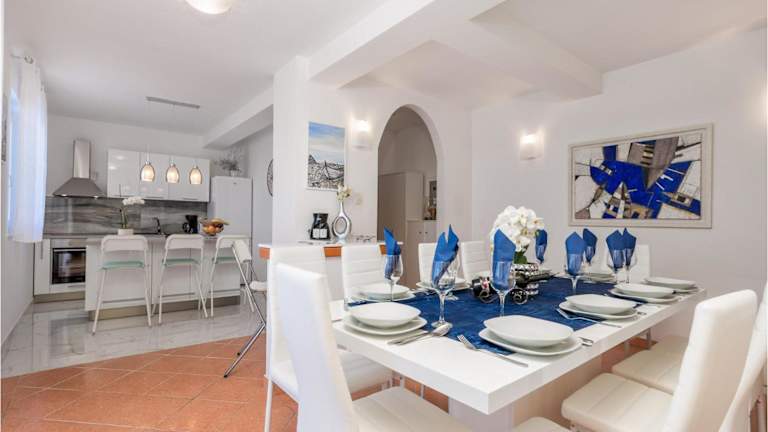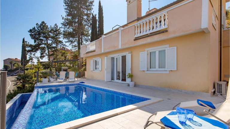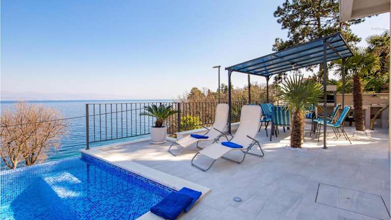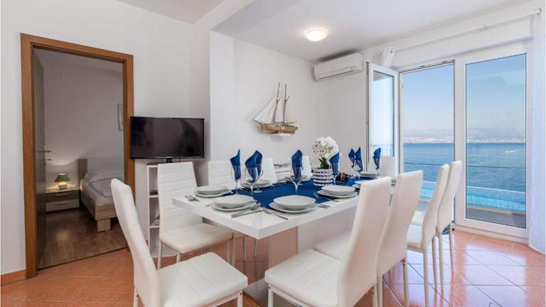 Beautiful Home In Medveja bietet einen Außenpool sowie Meerblick. Die Ferienwohnung umfasst fünf Schlafzimmer, ein Wohnzimmer und eine voll ausgestattete Küche. Zudem stehen den Gästen drei Badezimmer zur Verfügung.