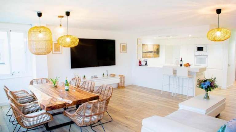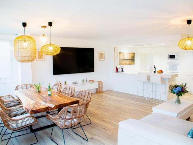 Die Ferienwohnung umfasst zwei Schlafzimmer, ein Wohnzimmer und eine voll ausgestattete Küche mit Kühlschrank und Kaffeemaschine. Zudem stehen zwei Badezimmer mit Whirlpool und Badewanne zur Verfügung. Handtücher und Bettwäsche werden bereitgestellt, und die Unterkunft ist klimatisiert.