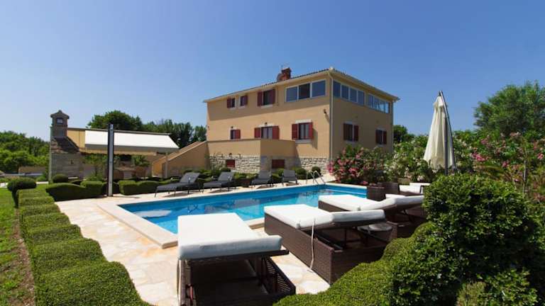 Das Beautiful villa Divina in Šišan bietet Ihnen einen traumhaften Aufenthalt mit großem Pool, Sauna und Hydromassage in der Nähe von Pula. Genießen Sie den Blick auf den Pool und den Garten von der Terrasse aus und entspannen Sie im saisonalen Außenpool, der Sauna und dem Whirlpool. Die klimatisierte Villa verfügt über 5 Schlafzimmer, ein Wohnzimmer, eine voll ausgestattete Küche und 5 Badezimmer. Das freundliche Personal spricht Deutsch, Englisch und Italienisch und steht Ihnen rund um die Uhr zur Verfügung. Im Garten der Villa finden Sie einen Grillplatz und einen Kinderspielplatz. Die schöne Bucht Kale Liznjan liegt nur 1,8 km entfernt und der Strand Munat Veliki erreichen Sie nach 3 km. Der Flughafen Pula ist nur 14 km entfernt.