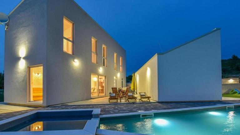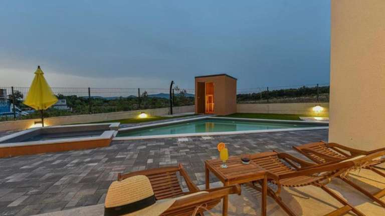 Die Beautiful Villa Silente with pool, whirpool and sa in Sukošan ist der perfekte Ort für einen entspannten Urlaub. Die Villa bietet eine Terrasse mit Poolblick, einen privaten Pool und einen schönen Garten. Mit 3 Schlafzimmern, einem geräumigen Wohnzimmer und einer voll ausgestatteten Küche bietet die Villa ausreichend Platz für die ganze Familie oder eine Gruppe von Freunden. Die Villa liegt in der Nähe beliebter Strände und Sehenswürdigkeiten und der Flughafen Zadar ist nur wenige Kilometer entfernt.