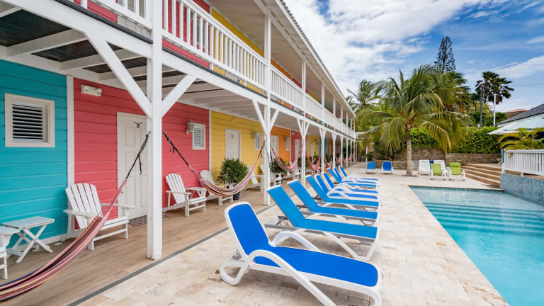 Das Bed & Bike Curacao - Jan Thiel in Willemstad ist die perfekte Unterkunft für Reisende, die sowohl Strand- als auch Fahrradabenteuer genießen möchten. Mit kostenfreien Fahrrädern, einem Außenpool und einer Gemeinschaftslounge bietet dieses Hostel alles, was Sie für einen komfortablen Aufenthalt benötigen. Das kontinentale oder amerikanische Frühstück sorgt für einen guten Start in den Tag, während die Terrasse und der Billardtisch für Unterhaltungsmöglichkeiten sorgen. Die Nähe zu den Stränden Jan Thiel Bay und Tugboat sowie der Flughafentransfer und die Autovermietung machen das Bed & Bike Curacao - Jan Thiel zur idealen Wahl für Ihren Urlaub auf Curacao.