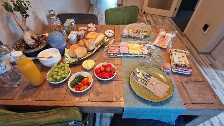 Im Bed & Breakfast Ravelin erwartet Sie ein köstliches Frühstück, um gestärkt in den Tag zu starten. Genießen Sie eine Auswahl an frischen Speisen und Getränken, um Ihren Tag optimal zu beginnen.