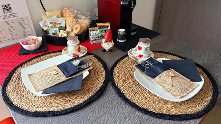 Jeden Morgen wird im Bedrooms B&B ein leckeres italienisches Frühstück serviert. Das Frühstück umfasst frische Croissants, Gebäck und Cappuccino oder Kaffee.