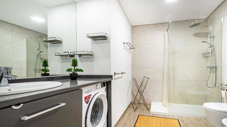 Die Ferienwohnung umfasst 2 Schlafzimmer und eine Küche, die mit einem Kühlschrank und einem Geschirrspüler ausgestattet ist. Des Weiteren befinden sich 2 Badezimmer mit Dusche, Haartrockner und Waschmaschine in der Unterkunft. Handtücher und Bettwäsche sind ebenfalls verfügbar.
