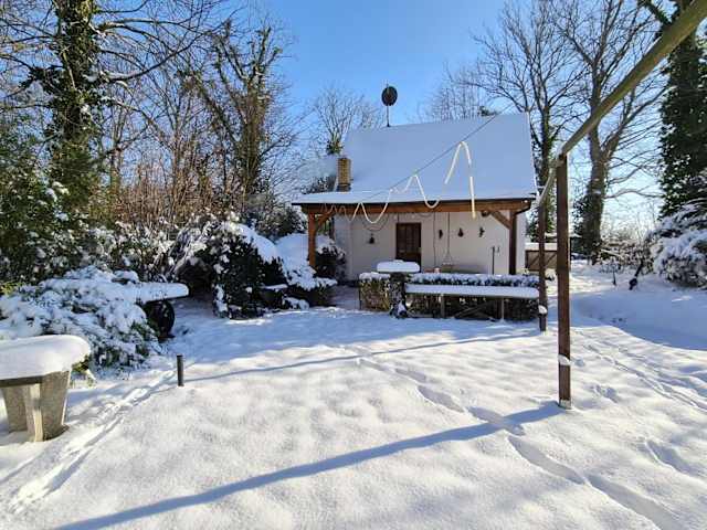 Das Behagliche Haus mit Kamin und Wärmepumpe bietet ein gemütliches Ferienhaus mit 2 Schlafzimmern und 1 Badezimmer. Das Haus ist klimatisiert und verfügt über eine voll ausgestattete Küche, einen Essbereich und einen Flachbild-TV. Bettwäsche und Handtücher werden gestellt. Von der Terrasse aus haben Sie einen schönen Blick auf den Garten.