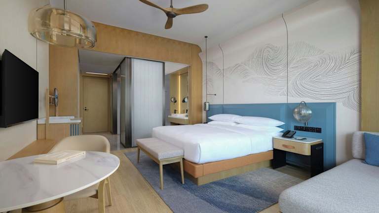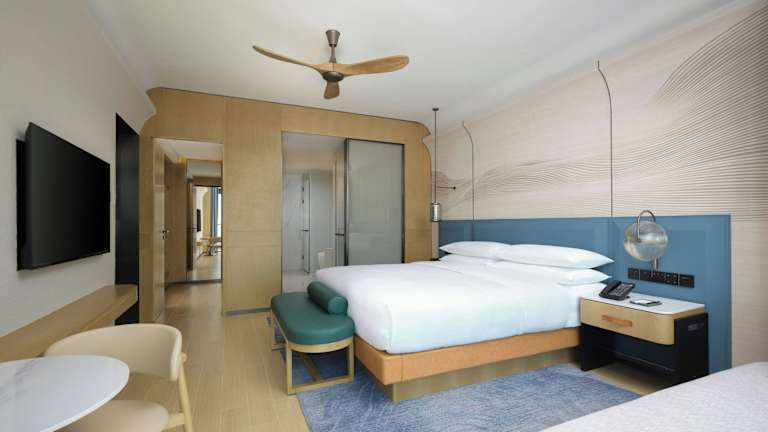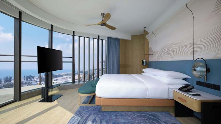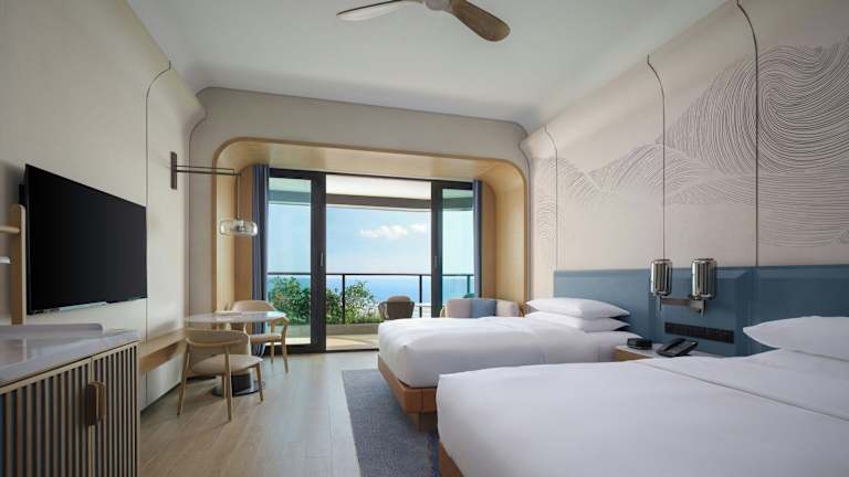 Die Zimmer im Beihai Marriott Resort sind mit Klimaanlage, Schreibtisch, Terrasse mit Meerblick, eigenem Badezimmer, Flachbild-TV, Bettwäsche und Handtüchern ausgestattet. Außerdem stehen ein Kleiderschrank und ein Wasserkocher zur Verfügung.