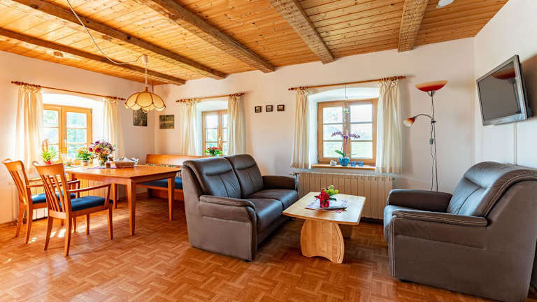 Die Unterkunft Beim Peterschmied verfügt über kostenloses WLAN, eine Gemeinschaftslounge sowie einen Kinderspielplatz und bietet kostenfreie Parkmöglichkeiten. Die Max Aicher Arena ist in einer Entfernung von 48 km erreichbar.