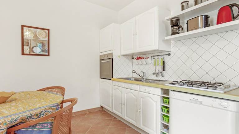 Es wird eine voll ausgestattete Küche angeboten, die mit einem Kühlschrank und einer Kaffeemaschine ausgestattet ist. Grillmöglichkeiten sind ebenfalls verfügbar.