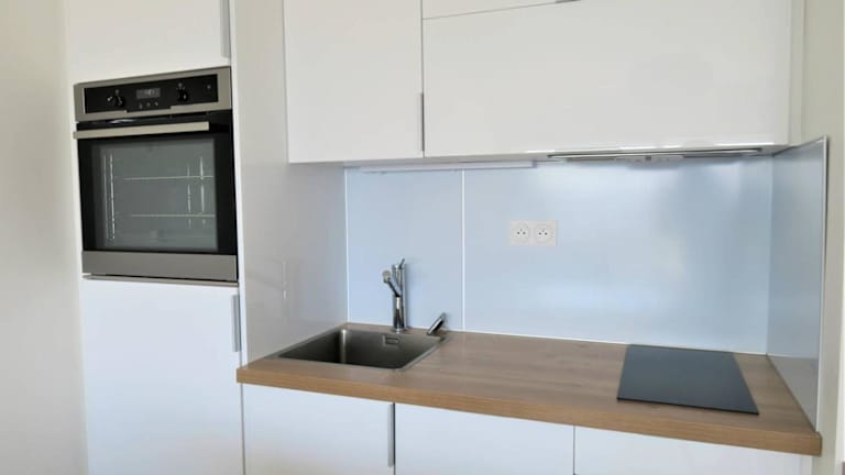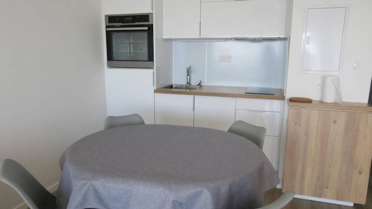 Die Unterkunft verfügt über eine voll ausgestattete Küchenzeile mit Kühlschrank und Geschirrspüler sowie einen Essbereich. Es sind keine Verpflegungsmöglichkeiten vor Ort angegeben.