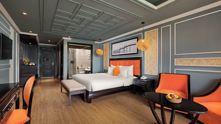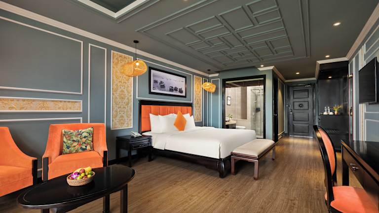 Die gastronomischen Einrichtungen umfassen ein Restaurant, in dem internationale und vietnamesische Küche in Buffetform serviert wird. Ein Frühstücksbuffet sowie Zimmerservice rund um die Uhr sind ebenfalls verfügbar. Eine Bar bietet Erfrischungen für die Gäste.