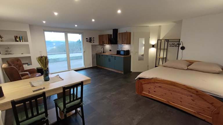 BelaVista'nBed - Peaceful Studio with private Terrace and Amazing Mosel Valley Views ist eine private Lodge, die speziell auf Ruhe und Entspannung ausgelegt ist. Die Unterkunft bietet eine eigene Terrasse sowie die Möglichkeit, auf einem Patio zu verweilen. Sie wird von einem privaten Gastgeber betrieben und ist nur für Erwachsene verfügbar.