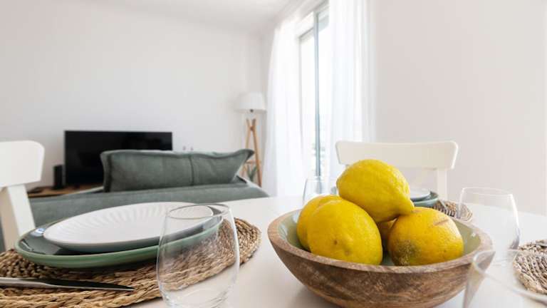 Die Ferienwohnung verfügt über zwei Schlafzimmer, ein Wohnzimmer, einen Flachbild-TV und eine gut ausgestattete Küche mit Kühlschrank und Geschirrspüler. Zur weiteren Ausstattung gehören ein Badezimmer mit Bidet sowie eine Veranda/Patiobereiche. Handtücher und Bettwäsche werden zur Verfügung gestellt.