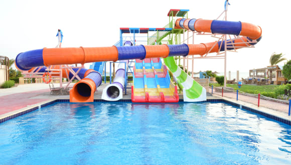 Fine 4 star All I24 nclusive & Half Board service , Beachfront Resort with 107 will equpid diffrent typs of rooms in Hurghada with pools and in/out door rest Bars, spa, Gym,private beach and huge aqua Park and all other 4Stars facilities Located in Al Ahyaa Road, Hurghada, 84515, Egypt