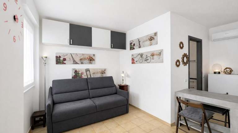 Die Ferienwohnung umfasst ein klimatisiertes Schlafzimmer, ein Badezimmer mit Bidet, Dusche und Haartrockner sowie eine voll ausgestattete Küche mit Kühlschrank, Ofen, Herdplatte und Kaffeemaschine.