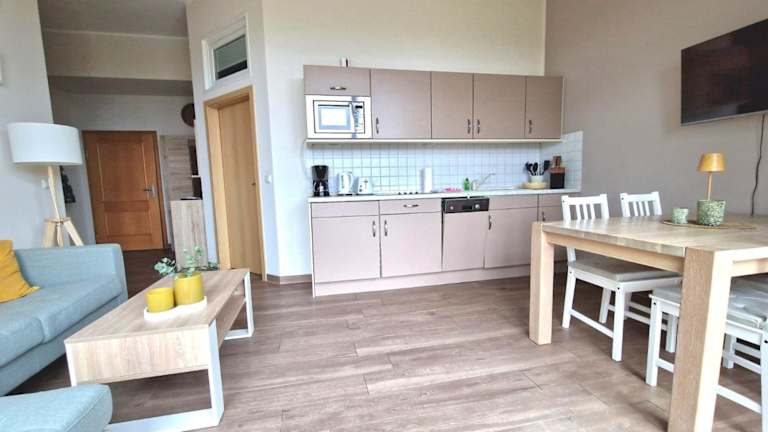 Das Apartment im Erdgeschoss des Hotels Bella Vita bietet seinen Gästen zwei komfortable Schlafzimmer, eine gut ausgestattete Küchenzeile mit Kühlschrank und Geschirrspüler sowie ein gemütliches Wohnzimmer mit Flachbild-TV. Das Apartment ist geschmackvoll eingerichtet und verfügt über kostenfreies WLAN. Handtücher und Bettwäsche können gegen Aufpreis zur Verfügung gestellt werden, um Ihren Aufenthalt so angenehm wie möglich zu gestalten.