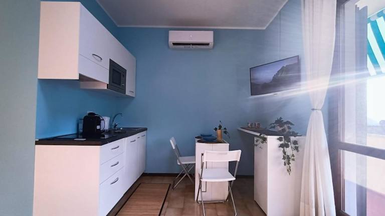 Die Ferienwohnung Bellagio Panoramic Mini Loft Giove bietet eine Klimaanlage und besteht aus einem separaten Schlafzimmer, einem Wohnzimmer, einer voll ausgestatteten Küche mit Herdplatte sowie einem Badezimmer. Die Unterkunft verfügt über kostenloses WLAN und eine Terrasse.