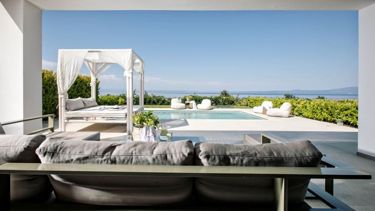 Im Bellevue Villas können Sie sich in Ihrem privaten Pool entspannen und die Sonne genießen. Es gibt auch viele Wassersportmöglichkeiten in der Nähe, wie zum Beispiel Schnorcheln. Erkunden Sie die Umgebung und entdecken Sie die Schönheit der griechischen Küste.