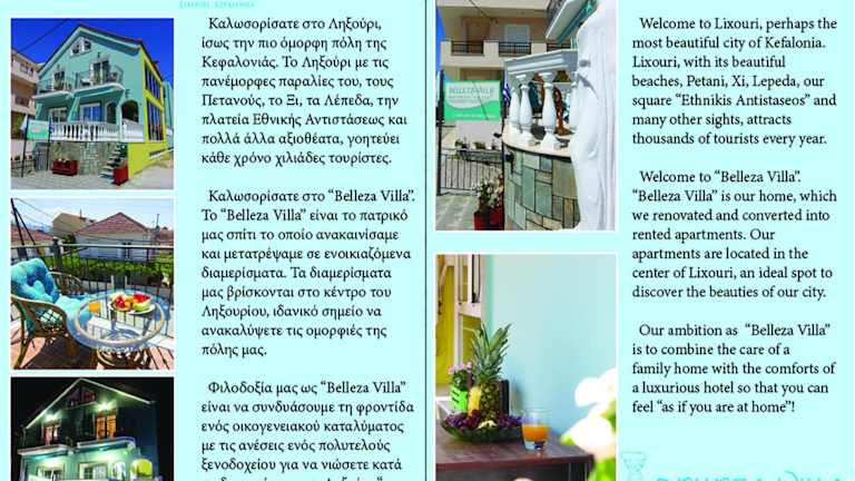 Das Personal der Belleza Villa steht Ihnen gerne zur Verfügung, um Ihnen bei der Anmietung eines Autos oder Fahrrads zu helfen. Auf diese Weise können Sie die Umgebung erkunden und die Schönheit der Insel Kefalonia entdecken. Entspannen Sie auch auf der Terrasse des Apartments und genießen Sie die warme griechische Sonne.