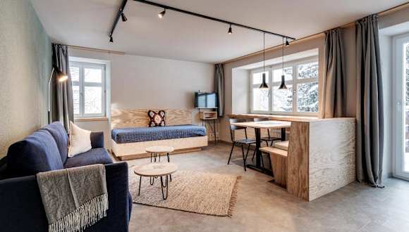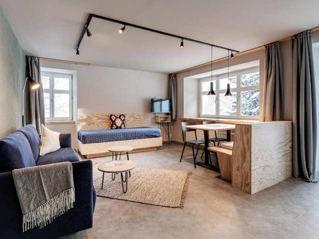 Die Wohneinheiten verfügen über einen Sitzbereich sowie einen Flachbild-TV. Einige Apartments bieten zusätzlich eine Terrasse oder einen Balkon mit Ausblick auf die umliegende Natur.