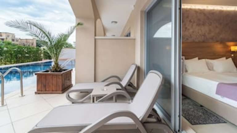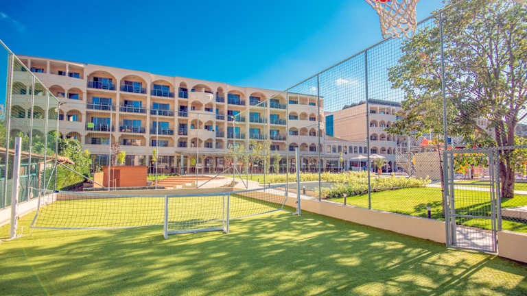 Das Hotel bietet verschiedene Freizeitmöglichkeiten, darunter ein Fitnesscenter, eine Sportplatz sowie organisierte Aktivitäten für Kinder und Erwachsene, die tagsüber und am Abend stattfinden. Ein Spielplatz im Freien ist ebenfalls vorhanden. Für Unterhaltung sorgt ein Amphitheater.