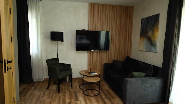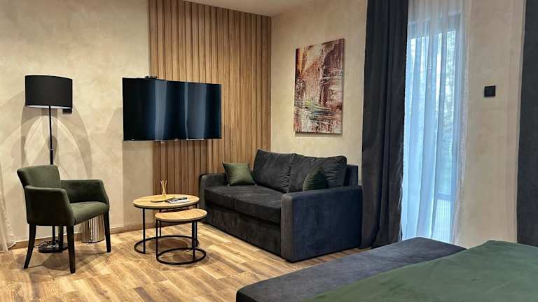 Die Ferienwohnung des Belvedere RESORT umfasst ein Schlafzimmer, ein Wohnzimmer und eine voll ausgestattete Küchenzeile mit Kühlschrank und Wasserkocher. Das Badezimmer ist mit Badewanne oder Dusche und kostenlosen Pflegeprodukten ausgestattet. In den Zimmern sind Handtücher und Bettwäsche vorhanden.