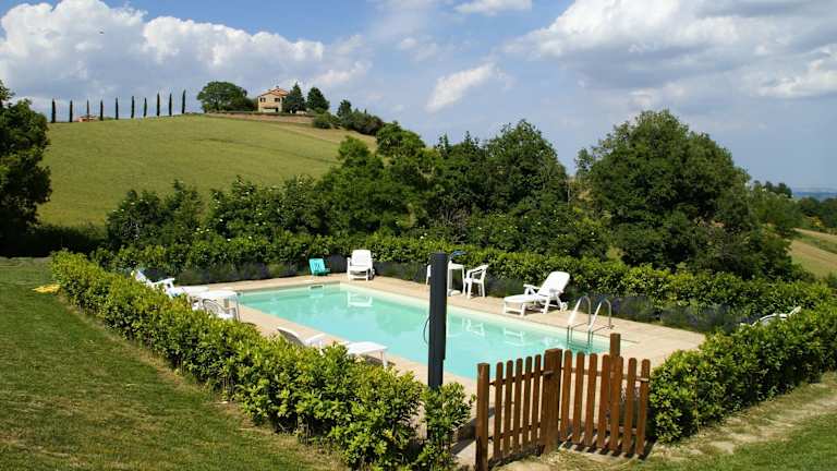 Das Ferienhaus in Treia bietet eine gemütliche und individuell eingerichtete Unterkunft in ländlicher Umgebung. Mit einem Außenpool und einer Terrasse können die Gäste den schönen Ausblick und die entspannte Atmosphäre genießen. Das Ferienhaus verfügt über drei Schlafzimmer und drei Badezimmer und bietet Platz für bis zu sieben Personen.