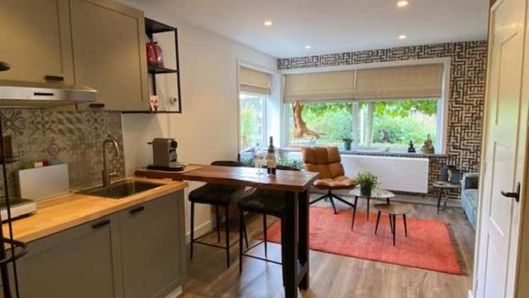 Das klimatisierte Apartment im BenB VoornePutten verfügt über ein Schlafzimmer, ein Wohnzimmer und eine voll ausgestattete Küchenzeile mit Kühlschrank und Kaffeemaschine. Das Badezimmer ist mit einer Dusche und einem Haartrockner ausgestattet. Handtücher und Bettwäsche werden gestellt. Eine Terrasse bietet zusätzlichen Komfort.