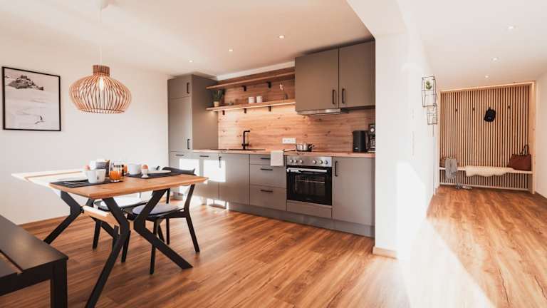 Die Zimmer in Benedikt & Wilhelmine sind mit einem Balkon und Bergblick ausgestattet. Jedes Zimmer verfügt über einen Sitzbereich, einen Flachbild-TV sowie eine voll ausgestattete Küche, die unter anderem einen Kühlschrank, Geschirrspüler, Ofen, Herdplatte, Toaster, Kaffeemaschine und Wasserkocher umfasst. Des Weiteren gibt es ein eigenes Bad mit Dusche und Haartrockner.