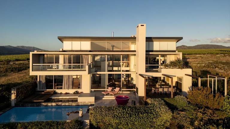 Die Unterkunft befindet sich in Hermanus direkt am Strand und bietet einen Blick auf die Berge. In der Nähe befinden sich das Naturschutzgebiet Mt Hebron, das 11 km entfernt ist, sowie der Kleinmond Golf Club, der in 18 km Entfernung zu finden ist. Der nächstgelegene Flughafen ist Kapstadt, 88 km von der Unterkunft entfernt.