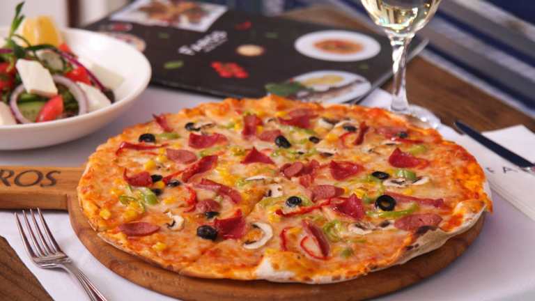 In der Unterkunft wird ein Buffet-Frühstück in kontinentaler oder vegetarischer Variante angeboten. Das hoteleigene Restaurant bietet mediterrane, nahöstliche, italienische Küche sowie Pizza an. Auf Anfrage sind vegetarische, halal-zubereitete und vegane Optionen verfügbar.