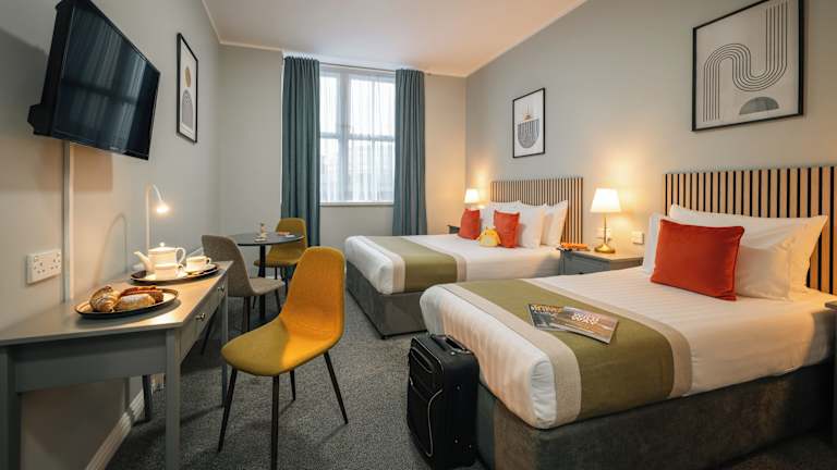 Das Beresford Hotel verfügt über 104 Zimmer, die mit Annehmlichkeiten wie einem TV, einem Laptop-Safe, einem Arbeitsbereich und kostenfreiem Tee und Kaffee ausgestattet sind. Jedes Zimmer verfügt über ein eigenes Bad mit einer Dusche oder einer Badewanne und einem Haartrockner. Es stehen auch rollstuhlgerechte Zimmer zur Verfügung.
