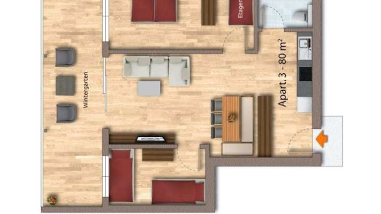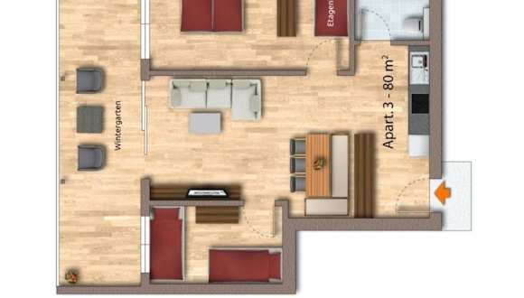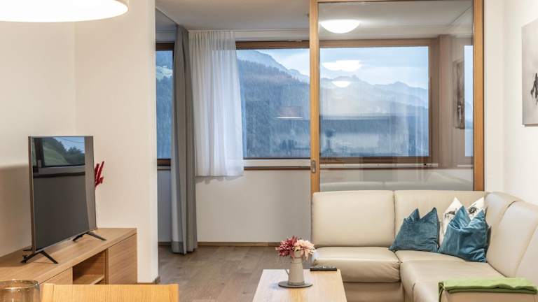 Berg Aparts Faschina - 03 ist eine Ferienwohnung, die durch ihre charmante Ausstattung und eine einladende Terrasse überzeugt. Die Unterkunft verbindet Komfort mit der Schönheit der Natur.