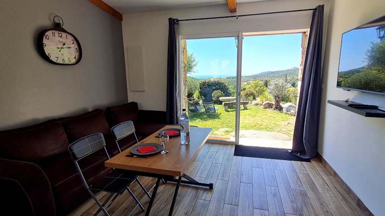 Die Unterkunft Bergerie A Sapara bietet Übernachtungsmöglichkeiten in einem Ferienhaus mit Garten und Terrasse sowie kostenlosem WLAN und Meerblick. Es handelt sich um eine klimatisierte Unterkunft, die einen kostenlosen Privatparkplatz zur Verfügung stellt.